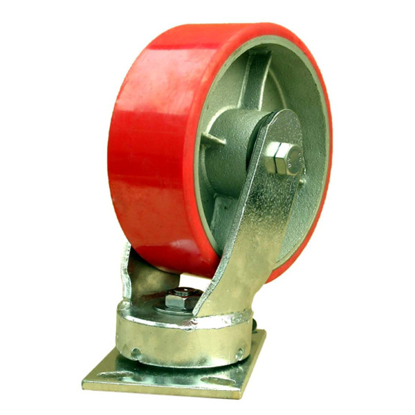 重型腳輪的旋轉(zhuǎn)板通常采用雙層鋼球跑道,沖壓成型以及熱處理。一般采用受力較大的平面球軸承或平面滾針軸承,配套錐體軸承,有效的提升了重型腳輪的負(fù)載能力。